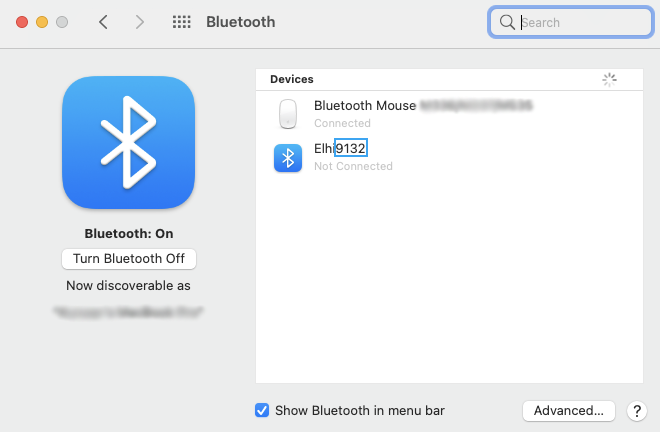 The serial number is important during the initial setup. The serial number of an Elhi device can be easily found from the Bluetooth name of the device. The number following the word "Elhi" is your serial number.
