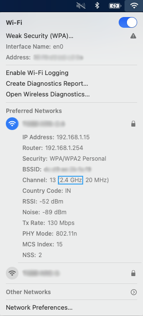 Having said that, please note that in order to configure your Elhi device to the 2.4 Ghz network, you will first need to connect your computer to that Wifi so that the same appears in the configuration dropdown.